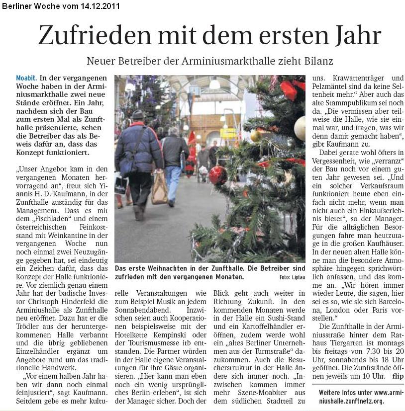 Nach einem Jahr äußert sich das Management zufrieden in der Berliner Woche vom 14.12.2011.