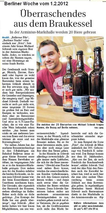Die 20 Biere vom BrewBaker in der Berliner Woche vom 1.2.2012.