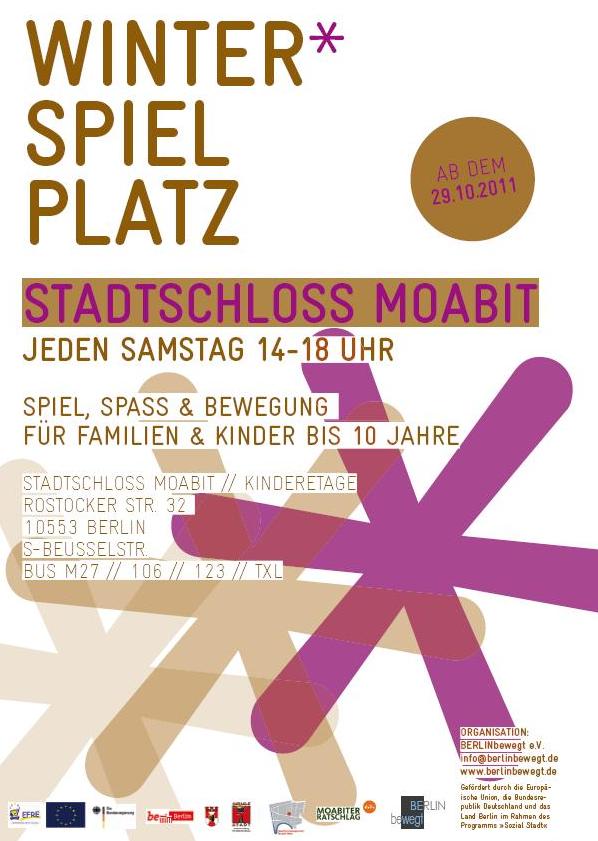 Im Stadtschloss Moabit: Spiel, Spaß und Bewegung für Familien und Kinder bis 10 Jahre jeden Samstag von 14 bis 18 Uhr. Hier der Flyer.