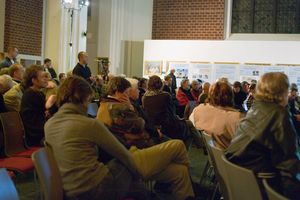 Kurz vor 19 Uhr strömen die Menschen herein. Schließlich ist die Kirche voll. Stühle und Bänke müssen noch herangeschafft werden. Ca. 250 Besucher. Die Moabiter hatten schon ungeduldig auf Informationen gewartet, nachdem die Presse im Juli berichtet hatte, dass 9 Millionen Euro Fördermittel für fünf Geschäftsstraßen, darunter auch Turm- und Müllerstraße, bereitgestellt werden. Seitdem gibt es eigentlich noch nichts Neues. Außer dass es jetzt wirklich losgeht. Die Verwaltung, Senat und Bezirk, mussten erst mal klären, wie die Rahmenbedingungen für dieses Förderprogramm "Aktive Stadtzentren" aussehen sollen und beinahe wären sie damit nicht rechtzeitig fertig geworden. Gerade mal einen Tag vor der Veranstaltung wurde die Entscheidung getroffen.