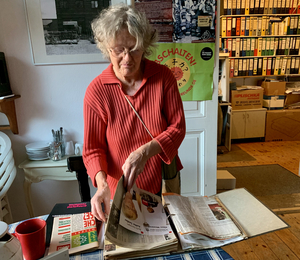 „Angefangen haben wir mit der Stadtteilzeitung „Blickwinkel“, die ab 1990 vom Moabiter Ratschlag herausgegeben wurde“, sagt Susanne Torka. Wichtige Artikel zur Lehrter Straße und Umgebung wurden herausgesucht und mit Stichworten für die spätere schnelle Suche versehen. Auch die Protokolle des Betroffenenrats Lehrter Straße sind bereits eingescannt und verschlagwortet. Danach folgen Artikel aus Berliner und überregionalen Zeitungen. Durch das Projekt hat das Team vom B-Laden Unterstützung beim Einscannen der Dokumente, beim Nummerieren und Katalogisieren sowie Einpflegen in eine Datenbank. Rund 2000 Stichworte sind bisher aus den Artikeln für die spätere Suchfunktion generiert worden. Nun geht es darum, die wichtigsten Begriffe für die weiteren Schritte herauszufiltern, beispielsweise spätere Kategorien der Webseite. Geeignet sind Themen wie z.B. Verkehr, Personen und Orte. Ähnlich wie bei den Stichworten werden parallel über hundert Ordner gesichtet, um die relevanten Materialien für die Aufbereitung des Archivs zu sammeln und unwichtige Dokumente auszusortieren. Die Teilnahme an einem Seminar „Archive für Einsteiger“, der Austausch mit Archivaren und die Zusammenarbeit mit dem Museum Digital und dem Mitte Museum zählen zu den Maßnahmen, die das Projekt vorantreiben. „Das ist eine wichtige Hilfe, auf der wir aufbauen können“, sagt Jürgen Schwenzel.