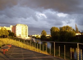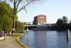 Folgt man der Promenade nach Norden kommt man zum Nordhafen, an dessen Ost-Ufer sich jedes Wochenende bei schönem Wetter viele Erholungssuchende tummeln. Dort wo vor einiger Zeit im Rahmen der Umgestaltung des Sellerparks eine neue Siitzfläche gebaut wurde - ganz früher lag dort ein Restaurantschiff vor Anker - kann man manchmal ganz neue Freizeitaktivitäten beobachten: Slacklinen überm Wasser.