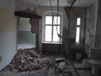 Trotz der frühen Entdeckung der Verstöße: Der Bauherr hat bereits Weichen gestellt für bauliche Veränderungen, die Absichten des Milieuschutzes (Schutz vor Verdrängung) widersprechen und die später ohne Genehmigung vollendet werden: Zur Grundrissänderung im Bereich Küche, Bad, Toilette ist eine Wand verschwunden, Küche und Wohnzimmer verbindet jetzt ein Durchbruch, gestemmt durch eine 40 Zentimeter dicke Wand.