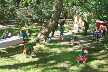 So ein Garten in der Großstadt ist eine echte Oase. Gerne besucht und ausgiebig genossen: von uns, von Gemeindegruppen und viel freundlichem Getier. Eine grüne Idylle für Groß und Klein, um - allein oder gemeinsam - anzubauen, zu gärtnern oder einfach nur durch die Blätter des alten Trompetenbaums in die Sonne zu blinzeln.
