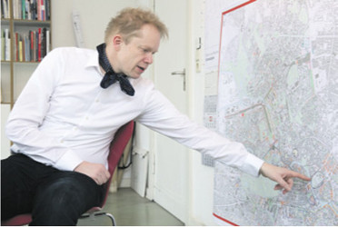 Derzeit ist es – im politischen Sinn – sehr entspannt. Man hat das Gefühl, dass alle Stadträtinnen und Stadträte im Bezirk gut miteinander kooperieren können. Das ist wichtig, weil wir viel ressortübergreifend zusammen arbeiten müssen, beispielsweise mit dem Straßen- und Grünflächenamt, das jetzt von meiner Kollegin Weißler verantwortet wird. Insbesondere in den Sanierungsgebieten und den »Aktiven Zentren« in Mitte kommen ja viele Aufgaben auf uns zu, die besonders den öffentlichen Raum und den Verkehr betreffen und wo wir kurze Kommunikationswege brauchen. Das gilt ebenso für die sieben Quartiersmanagementgebiete in Mitte und für die neue »Sozialräumliche Planungskoordination«, die jetzt in meinem Ressort angesiedelt ist. Auch dort geht es um die Entwicklung der Kieze. Dabei machen wir gerade viele Vor-Ort-Termine. Das finde ich sehr schön: Es ist etwas anderes, die Gebiete aus der Perspektive der Bürger vor Ort kennenzulernen. Solche Dialoge können viel im Kiez selbst bewegen. Man muss da nicht immer groß dirigieren.