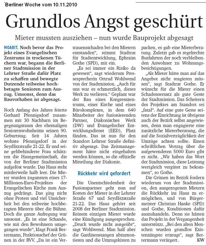 Hier auch noch der Link zu der Vorlage zur Kenntnisnahme der Drs. 1860/III vom Nov. 2010 zur Entmietung. In der Anlage ein Brief der Stadtmission (siehe Kommentar 33). Auch das MieterMagazin berichtete in der Ausgabe Jan./Feb. 2011.