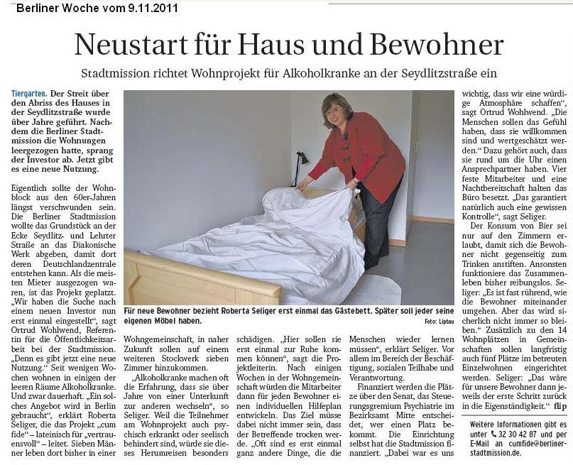 Die Berliner Woche vom 9.11.11 berichtet über das neue Projekt im ehemaligen Seniorenhaus.