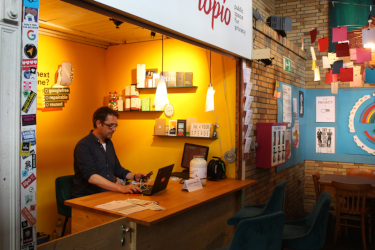 Topio existiert seit 2017 und ist immer noch im Aufbau befindlich, so Michael. Der Verein mit aktuell sieben Mitgliedern und rund 25 ehrenamtlich Engagierten finanziert sich einerseits über den Verkauf von Smartphones mit freien Betriebssystemen und Anwendungen (Apps/Applikationen) - die kosten dann erheblich weniger - und andererseits durch Spenden und Fördergelder. Dabei ist man froh über die Kooperation mit manchen Firmen. Darunter ist z.B. ein Unternehmen, das einen seiner Mitarbeiter für einen Tag pro Woche freistellt, damit er bei Topio ein paar Stunden lang den Leuten das Betriebssystem Linux auf Laptops aufspielen kann. Michael selbst geht regelmäßig in eine Grundschule im Wedding, um dort mit Kindern und Jugendlichen kreative Projekte zu machen, u.a. aus Müll bzw. Elektroschrott: „Da öffnen wir alte Rechner und schauen hinein, was man aus den einzelnen Bestandteilen so alles machen kann.“