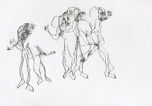 Christiane Meyers Serie »Der Mensch ist ein feinfühliges Wesen« begreift die menschliche Figur als Thema eines Arbeitsansatzes, in dem eine Reihe von äußerst reduzierten Zeichnungen multipler Figurenkonstellationen entwickelt wird. Gerade die Unmittelbarkeit des Zeichnens und das bewusste Ausschalten jeglicher Kontrollmechanismen lassen außerordentlich deutliche Bilder der inneren Vorstellung entstehen, in denen tiefenpsychologische Phänomene und »objektiver Zufall« als Co-Autoren bei der Hervorbringung einer »gedanklichen Materie« offengelegt werden. Strenge Motivbeschränkung und konsequent serielles Arbeiten entwerfen einen bemerkenswert anschaulichen Diskurs vielfältiger künstlerischer Ausdrucksmöglichkeiten.