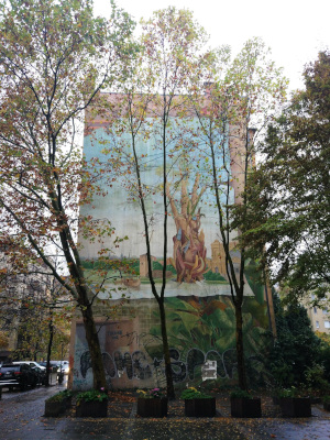 Die IBA fiel mit der Ausführung des ersten Wandbilds der Künstlergruppe Ratgeb zusammen, die sich zwei Jahre zuvor gegründet hatte. Es entstand auf einer elf Meter breiten und 20 Meter hohen Brandwand und wurde vom Land Berlin und dem Senator für Bau- und Wohnungswesen beauftragt und finanziert.