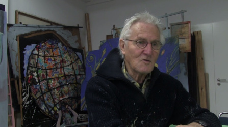 Werner Brunner: Die Künstlergruppe Ratgeb nannte sich nach Jörg Ratgeb, ein Zeitgenosse von Dürer, der gevierteilt wurde, von vier Pferden zerrissen, in Pforzheim. Das war so unser Ding. Und wir fünf waren bis 1985 zusammen, haben viele Wandbilder gemacht. Wir hatten ein Gemeinschaftsatelier und drei davon hatten sich auf Wandbilder spezialisiert und viele Aufträge gehabt. Das lief ziemlich gut. Wir waren bekannt, im Ausland mehr als hier. Die Kunstinstitutionen wollten hier von uns nicht viel wissen. Aber Holland, Frankreich, bis Chicago waren wir, bis nach Australien waren wir bekannt und haben ständig Atelierbesuche bekommen.