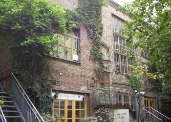 Schon seit 1992 ist hier neues Leben eingezogen: die Akademisch-Musische Verbindung Berlin (AMVB). Sie hat das Haus gekauft. Noch finden sich Erinnerungen an die Stukkateur-Firma Bachmann: der Schriftzug im Glas über der Eingangstür oder Stuckelemente an den Wänden des Hauseingangs. Bis vor kurzem hat sogar noch eine frühere Angestellte der Firma im Haus gewohnt, bis sie die Treppen nicht mehr steigen konnte. Das Erdgeschoss der Remise unter dem großen Saal hat die Tanzschule »Hofparkett« gemietet.