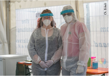 Auch viele Freiwillige aus dem medizinischen Bereich meldeten sich: Ärzte, Studenten; zwei kamen vom RobertKoch-Institut und zwei vom Landesamt für Gesundheit und Soziales. Also viele Spezialisten, die wir gut brauchen konnten. Und der Amtsleiter des Gesundheitsamtes Mitte, Dr. Murajda, ist ja selbst Virologe und hat sehr gute Kontakte. So verfügten wir über ein fachkundiges medizinisches Team, das darüber hinaus auch gut mit der Forschung vernetzt ist. Im Labor der Charité werden unsere Tests analysiert, mit dem Institut von Dr. Christian Drosten pflegen wir sehr guten und stetigen Kontakt. Wir haben also eine erstklassige wissenschaftliche Beratung.
