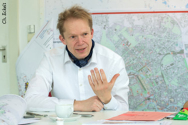 Dort wurde wie fast überall in den Verwaltungen zunächst einmal vieles heruntergefahren und ins Home-Office verlegt, zudem war ein Teil der Mitarbeiter krisenbedingt als Verstärkung im Gesundheitsamt eingesprungen. Bei der Stadtentwicklung sind die Auswirkungen aber nicht so unmittelbar, weil z.B. Genehmigungsverfahren langwelliger verlaufen. Und auf den Baustellen wurde die ganze Zeit weitergearbeitet. Inzwischen fahren wir den Betrieb peu à peu wieder hoch, Mitte Mai waren wir wieder bei etwa 70% unserer Leistungsfähigkeit. Aber im Straßen- und Grünflächenamt herrscht immer noch Personalmangel, und so müssen auch größere Projekte wie der Spreeuferweg oder die Bremer Straße noch etwas warten.