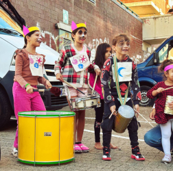 Murga schließt laut Braian eine Lücke „als soziale Komponente, und zwar überall dort, wo der Staat fehlt.“ Das ist auch ein Grund dafür, warum die Gruppe künftig gern Moabiter Jugendliche bei ihren Murgas einbeziehen möchte. „Im Sommer laufen sicher wieder viele bei uns im Park vorbei und möchten gern einmal ausprobieren, die große Trommel zu schlagen,“ so Andrés. Der Anfang für die Arbeit mit der Nachbarschaft wurde 2023 gemacht, als es im September unter dem Motto „Corso Murgo“ im und um den Zilleklub einen Murga-Tag gab. Diese Veranstaltung wurde aus dem Aktionsfonds des Quartiersmanagements Moabit-Ost finanziell unterstützt.
