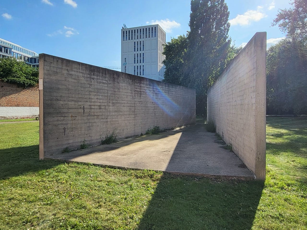 Die Stille überrascht mich. Dabei ergibt es Sinn, dass in den Geschichtspark Ehemaliges Zellengefängnis keine Geräusche schallen. Immerhin wurde dieser Ort einst dafür geschaffen, dass Menschen nichts von äußeren Einflüssen mitbekommen. So wie ich mir nur vorstellen kann, welches Leid hier einmal herrschte. Und wie gut es mir im Vergleich geht. Ich komme vom Hauptbahnhof, wo es nur so von Menschen wimmelte. Auch als ich ihn Richtung Europaplatz verließ und die Straße überquerte, um zum ehemaligen Zellengefängnis zu kommen, waren überall Fußgänger. Alles ist so voll, wie es an einem Samstag im August im zentralen Teil Berlins nun mal ist. Doch nun stehe ich hier im Park und die Menschen fehlen. Es ist grün und leer. Was eine Mauer so ausmachen kann.