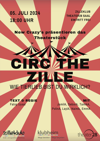 Montags probt sie unter dem Motto „Wie tierlieb bist Du wirklich?“ mit den Jüngeren für „Circ the Zille“. So heißt das Stück über Tiere, die im Zirkus und im Zoo leben, und das am 5. Juli 2024 hier im Theatersaal uraufgeführt werden soll. Diese Schauspieltruppe nennt sich übrigens in Anlehnung an die Vorgängertruppe „New Crazys“ und besteht aus aktuell zehn Kindern.