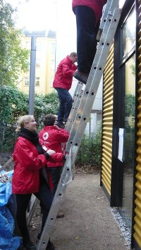 BürSte hat mit Hilfe von TOTAL Deutschland auf dem Dach des Bürsten-Hauses eine kleine Wetterstation errichtet. TOTAL, die am Hauptbahnhof in einem noch immer wachsenden Hochhaus ihr Hauptquartier für Deutschland errichten, hat großzügiger Weise eine Wetterstation gespendet und am 18. Oktober mitangepackt, das kleine technische Wunderwerk aufzustellen. Zahlreiche Sensoren wurden angeschlossen, Kabel verlegt und Himmelsrichtungen zur Aufstellung der Anlage bestimmt. Die Zusammenarbeit war sehr gut, denn Total hatte schwindelfreie Naturwissenschaftler und Techniker geschickt, für die es kein Problem war, die Anlage auf dem Dach mit uns zusammenzubauen und in Betrieb zu nehmen. Die Station erfasst das Stephankiezwetter und sendet alle 5 Minuten die Daten ans Internet. Einen Link zum Wetter findet der Interessierte auf unserer Homepage www.stephankiez.de. Angezeigt wird Temperatur, Luftfeutigkeit, Solarstrahlung, Regenmenge und die Windrichtung sowie die Windgeschwindigkeit, plus die Werte der letzten 24 Stunden.