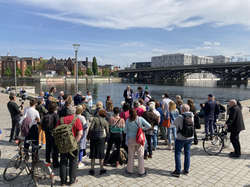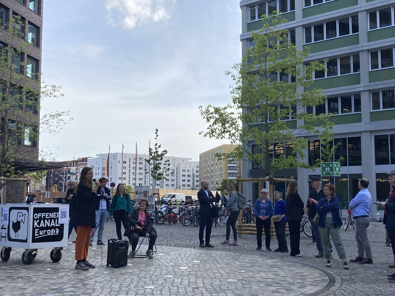 Seit 2020 betreibt Nora Spiekermann das Kunstprojekt „Offener Kanal Europa“ und macht Führungen durch die Europacity. Sie berichtet, dass die Altbauten von der Bahn vor über 100 Jahren gebaut wurden. Stadtrat Gothe ergänzte, dass dieses große innerstädtische Areal zum Großteil zum Bundeseisenbahnvermögen gehörte und in die Bundesanstalt für Immobilienaufgaben BImA überführt wurde. Diese wird bestimmt einige Grundstücke behalten und selbst Bauherrin, vermutet Stadtrat Gothe.