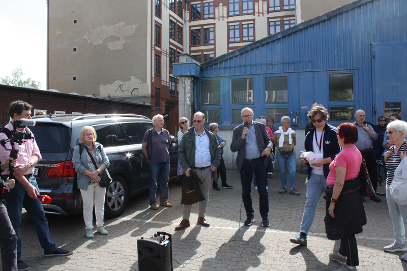 Beim zweiten Halt vor der großen Brache erklärt Stadtrat Gothe, dass es sich hier um eine private Fläche handelt, auf der ein Achtgeschosser und ein Park geplant werden. Vereinzelt gibt es in der Heidestraße noch Wohnhäuser aus der Gründerzeit, und einen Gewerbehof, auf dessen Fläche die Carl-Bechstein-Stiftung ihren „Bechstein-Campus“ errichten möchte. Die aktuellen Planungen dazu wurden von Gregor Wilmes und dem Geschäftsführer der Bechstein AG, Stefan Freymuth, vorgestellt: Dieses Grundstück soll neu bebaut und vor allem der Musik gewidmet werden. Die künftigen Nutzungen werden - anders als die aktuellen Zwischennutzungen - auf Dauer angelegt. Zur Entwurfsplanung fand ein öffentlicher Wettbewerb statt. Der „Bechstein-Campus“ soll ein „Haus des Klaviers“ beinhalten. Geplant sind zwei Konzertsäle, eine Klaviersammlung, Meisterkurse sowie kleine Wohnungen für Musikstudenten, die extra mit Schallisolierung zum Üben ausgestattet werden. Der Flaggschiff-Laden der Bechstein AG wird hier entstehen, und die restlichen Gewerbeflächen werden an andere Nutzer vermietet. Die Carl-Bechstein-Stiftung übergibt viele Klaviere kostenlos an Schulen. Sie ist eine gemeinnützige Stiftung, gegründet 2012 von der Bechstein AG, der das Areal schon rund 40 Jahre lang gehört. „Es war damals eine Insel im Niemandsland“. Gefragt wurde, ob alle Gebäude für die Campus-Neubauten abgerissen werden? Nein, der große zentrale fünfgeschossige Altbau bleibt und wird in die Neubauten integriert. Doch kann es noch einige Jahre dauern. Zunächst müssen die Gewinnerarchitekten beauftragt und Baugenehmigungen erteilt werden. „Das ist unser erstes Bauvorhaben, da sind wir geduldig.“ Mehr dazu auf www.carl-bechstein-stiftung.de und auf https://moabitonline.de/40329 sowie https://entwicklungsstadt.de/klavierzentrum-in-der-europacity-bechstein-campus-in-moabit-geplant/