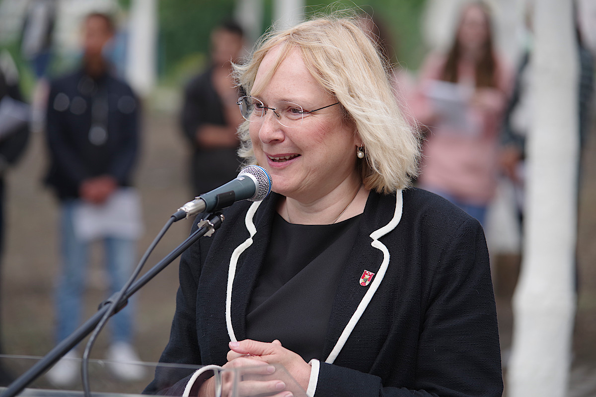 Mit der Einweihung des Gedenkorts Güterbahnhof ist aber nicht nur eine Mahnung zum Gedenken an die Geschichte der Deportationen verknüpft, sondern auch eine Mahnung an einen anderen Umgang mit diesem Ort – nicht nur ein wachsender, lebender Gedenkort, der mit den Jahren seine Gestalt verändert – sondern auch Pflege und Aufmerksamkeit braucht, was Francesco Apuzzo vom raumlabor berlin in seinem Redebeitrag betonte – eine Herausforderung sowohl an die für den Ort zuständigen Verwaltungen des Landes Berlin bzw. des Bezirks Mitte wie auch an unsere Gesellschaft. Die Theodor-Heuss-Gemeinschaftsschule äußerte schon, dass sie als direkter Nachbar mit auf den Gedenkort achten und als Thema im Unterricht aufnehmen wird. Und die Bitte von Frau Weißler am Ende der Veranstaltung: „Passen Sie auf diesen Ort auf!“ wird hoffentlich nicht vergeblich sein, und Einzelpersonen wie Initiativen werden den wachsenden Gedenkort aktiv – und wenn notwendig auch die Ämter mahnend – begleiten.
