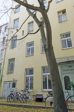 Mitte September wurden die Mieter von Vorderhaus, Seitenflügel und Quergebäude aufgefordert, bis zum 30. November auszuziehen. Die Standsicherheit des Quergebäudes sei gefährdet, so die Gewobag, die das Haus 2013 gekauft hat. Das normale Vorgehen wäre, die Mängel zu beseitigen und die Mieter, falls nötig, für diese Zeit woanders unterzubringen. Einigen Mietern – nicht allen – wurde bereits Ersatzwohnraum angeboten. Unklar ist jedoch, ob die Umsetzung nur temporär – also für die Zeit der Bauarbeiten – erfolgen soll oder endgültig. Ein Mieter hat festgestellt, dass es sich bei den angebotenen um viel kleinere, teurere Wohnungen handelt. In einem zweiten Schreiben und im Gespräch mit den Mietern ist das Wohnungsunternehmen etwas zurückgerudert. Es sei nur erforderlich, dass ein Stockwerk leer gezogen wird. Doch in einer Stellungnahme gegenüber dem MieterMagazin wiederholte die Gewobag, dass eine Sanierung des Gebäudes im bewohnten Zustand nicht möglich sei. Aktuell könne man Umfang und Auswirkungen der Baumaßnahmen noch nicht abschätzen, so Sprecherin Monique Leistner: „Wir sind bestrebt, jedem Mieter einen Rückzug in das Haus zu ermöglichen.“ Die Sicherheit der Mieter habe höchste Priorität.