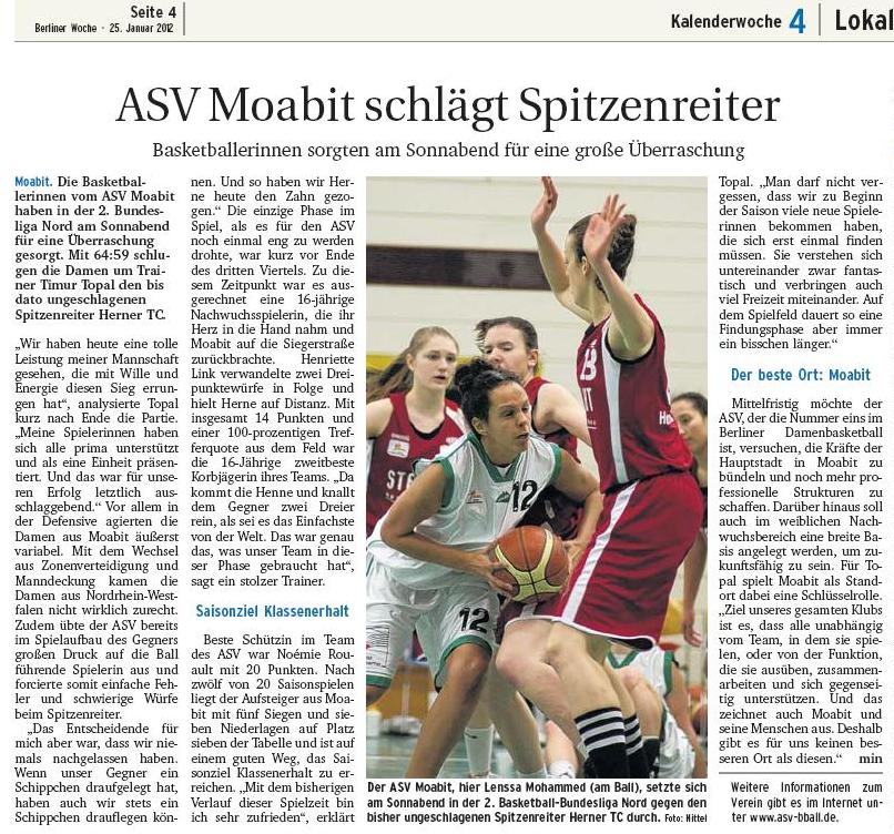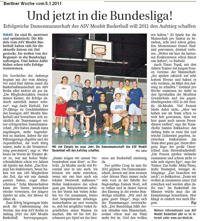 Überraschungserfolg: Bericht über die Baskettball-Damen in der Berliner Woche vom 25.1.12.