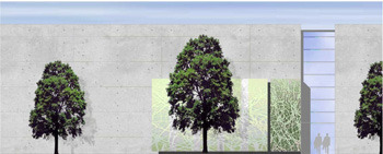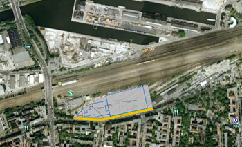 Aber die Großmarkthalle selbst ist zum Stein des Anstoßes geworden. Eine Bürgerinitiative Siemensstraße hat sich gegründet, die sich für den Erhalt der Pappelallee, zumindest dem nicht geschädigten 50% der Bäume ausspricht und große Probleme mit der Fassadengestaltung und der Lage der Halle hat, auch wenn diese nur 11,75m hoch und nicht 13m, wie die Initiative in einem Flugblatt mitteilt und auch nicht wie dort in einer Bildmontage dargestellt eine unbegrünte monolithische Betonfassade sondern eine mit mehreren Glasflächen unterbrochene und zu 30% begrünte Außenfläche (Bild Fassade) in der jetzigen Planung ausweist.