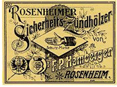 Die Firmengeschichte der Familie Hamberger begann 1866, als die Brüder Franz Paul und Sebastian Hamberger mit der Produktion von Schwefelhölzern den Grundstein fürdas Unternehmen legten und zur Verbesserung der Absatzbedingungen im Jahre 1911 nach München umsiedelten ( Bild Zündhölzer).