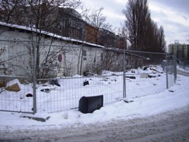 Und tatsächlich: vor einigen Tagen wurde der Zaun repariert. Ein Bauzaun wurde aufgestellt. Immerhin. Obwohl schon wieder ein Fernseher vor dem Zaun steht. Der Müll ist noch nicht entsorgt, sondern zur Zeit unter dem Schnee verschwunden. In der Antwort des Ordnungsamts an die Bürgerinitiative wird erklärt, dass dem Eigentümer noch eine längere Frist zu Müllentsorgung eingeräumt werden musste, da es in dieser Zeit nicht zu schaffen sei.