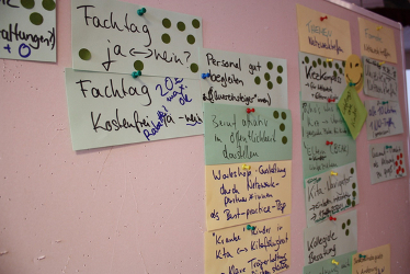 Im Workshop „Mit lachendem und weinendem Auge – Rückblick auf gemeinsame Jahre“ ließ Susanne Bierwirth, die selbst Erzieherin, Sozialpädagogin und Kinderschutz-Fachkraft ist, die Teilnehmer die letzten 5 Jahre der gemeinsamen Netzwerkarbeit Revue passieren. Gemeinsam wurden Ideen dazu gesammelt, welche Aktionen auch ohne weitere Projektförderung erhaltenswert sind und wie man nicht den Spaß an der Netzwerkarbeit verliert.