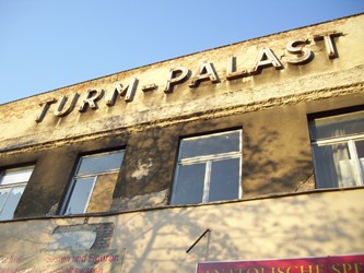 Auch die Ausstellung zur Geschichte der Moabiter Kinos sollte natürlich am liebsten in einem historischen Kinogebäude gezeigt werden. Der leer stehende "Turm-Palast" wäre naheliegend. Das 50er-Jahre-Gebäude soll im Rahmen der Neugestaltung des Schultheiss-Areals abgerissen werden.