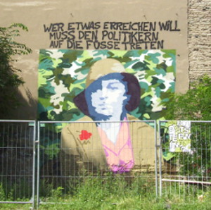 Den Aufbau der Kulturfabrik in der Lehrter Straße 35 hat sie in ihren letzten Jahren tatkräftig unterstützt und weil ihr auch die Graffitti-Spray-Kunst gefiel, hat sie sich ein großes Bild auf der Wand der Kulturfabrik gewünscht mit dem Spruch "Dieses Haus ist für diese Jugend". Ob das wohl noch verwirklicht wird?