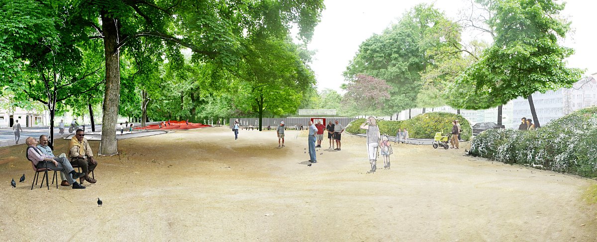 »Der Siegerentwurf überzeugte das Preisgericht besonders durch die gelungene Öffnung der Parkanlage zum öffentlichen Straßenraum, ohne gänzlich die schützende Strauchschicht zu entfernen. Es gelingt der Arbeit, die unterschiedlichen räumlichen und funktionalen Anforderungen in Einklang zu bringen. Die Bestandssituation mit ihren gartenhistorischen Relikten wird behutsam aufgegriffen und in eine ausdrucksstarke, zeitgemäße Parkanlage überführt. An der Ottostraße wird ein Spielbereich angelegt und an der Stromstraße entsteht eine leicht erhöhte Terrasse mit Café.« teilt zum Siegerentwurf die Senatsverwaltung in ihrer Pressemeldung mit. Nachfolgend die zur Verfügung stehenden Visualisierungen zum Bereich Kleiner Tiergarten bzw. Ottoplatz: