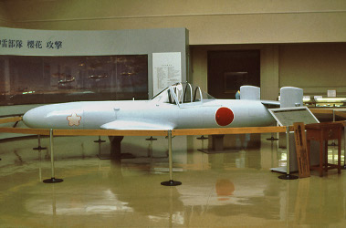 Kamikaze-Flugzeug vor einem kriegsromantischen Diorama