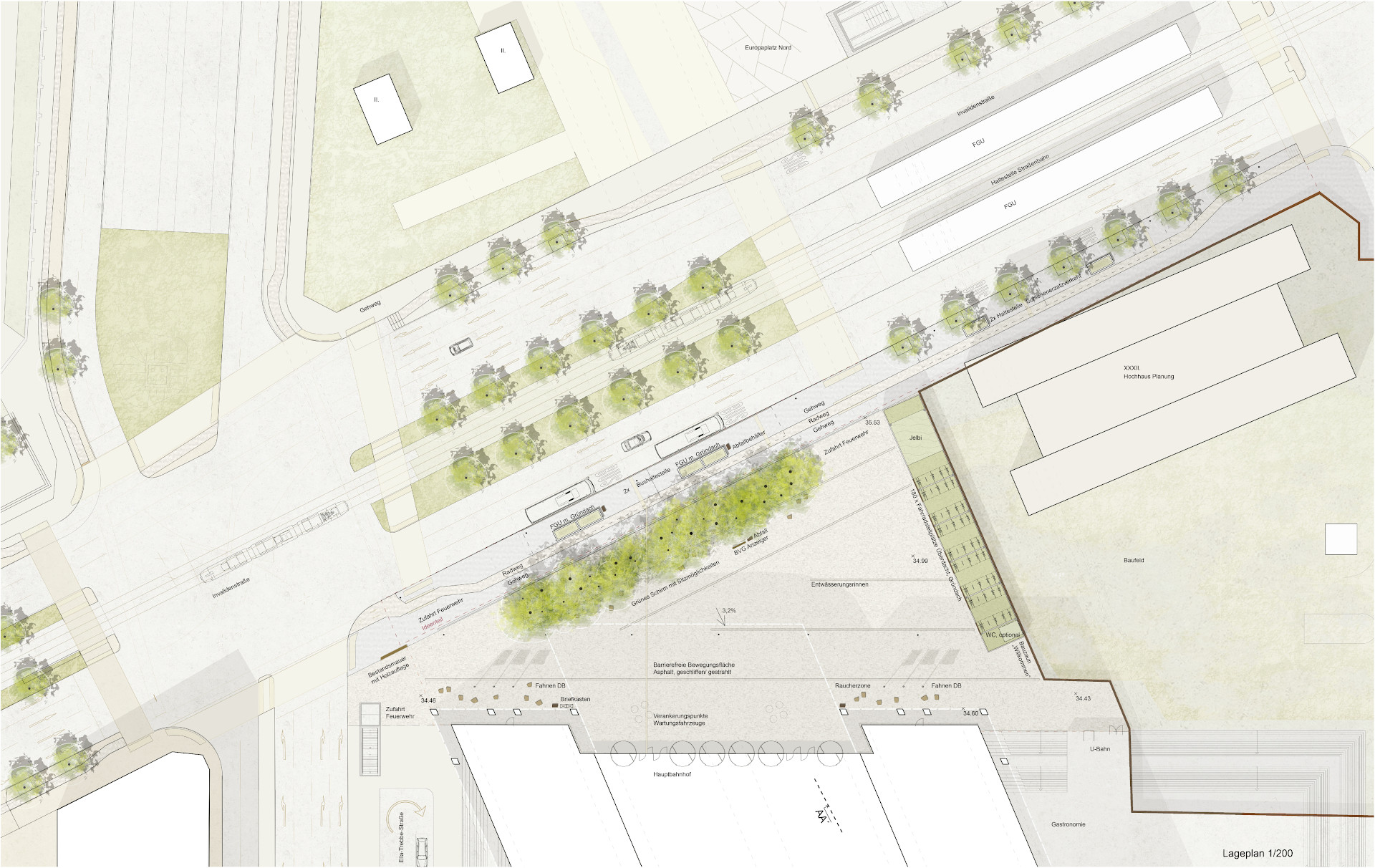 Der "Europaplatz Süd", der Bahnhofsvorplatz des 2006 eröffneten Hauptbahnhofs war bisher nur provisorisch hergestellt worden – ohne ein grundlegendes Konzept. Für noch mindestens 15 Jahre sind Teile der Platzfläche weiterhin blockiert: durch die Baustelleneinrichtung für die S-Bahn S21 und ein weiteres auf der Platzfläche geplantes Hochhaus, das auch erst nach der Fertigstellung der S21-Arbeiten in dessen Bereich errichtet werden kann.