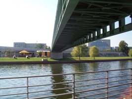 Schon seit Juni - zur EM 2008 - beschallt eine Schweizer Klanginstallation Touristen und Berliner, die auf der Fußgängerbrücke, benannt nach Gustav Heinemann, vom Hauptbahnhof ins Regierungsviertel laufen und damit direkt auf die Schweizer Botschaft zu, die als einzigstes Gebäude des Alsenviertels teilweise erhalten blieb. Hier ist fast immer viel Betrieb.