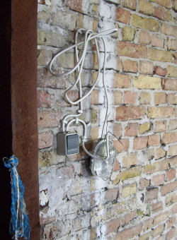 Die Wassereinbrüche sind aber nicht die einzigen Mängel der Baustelle. Es gibt so gut wie keine Sicherheitsmaßnahmen. Auf dem frei zugänglichen Dach liegen Elektrokabel nach Starkregen 20 cm tief im Wasser. Der Teppich im Treppenhaus ist mit einem Fließ abgedeckt, das Falten wirft und auch schon Löcher hat - eine Stolpergefahr. Im April musste eineinhalb Wochen das Gas abgestellt werden, da es Probleme mit den Leitungen gab. Treppenlicht und Klingeln fallen häufig aus. Die Keller sind durch die Bauarbeiten im Hof "geflutet". Die großen Löcher in der Hoffassade, an die der Aufzug angebaut werden soll, waren nur mit dünnen Latten und Folie verkleidet. Erst kurz vor dem Drehtermin der Abendschau wurden sie mit Brettern gesichert. Auch der hier abgebildete Lichtschalter auf dem Dach wurde neu installiert. Baumaterialien lagern auf dem Hof und behindern den Weg zu den Müllcontainern. Der Fahrradabstellplatz ist nicht mehr zu nutzen. Immer wieder gibt es Probleme, weil Mieter sich nicht mit den osteuropäischen Arbeitern verständigen können. Die Gewerbemieter mussten ein paar Häuser weiterziehen, weil aus dem Keller Feuchtigkeit und Schimmel die Wände hoch kroch. "Das mobile Schloßgespenst" ist jetzt in die Quitzowstraße 129 zu finden.