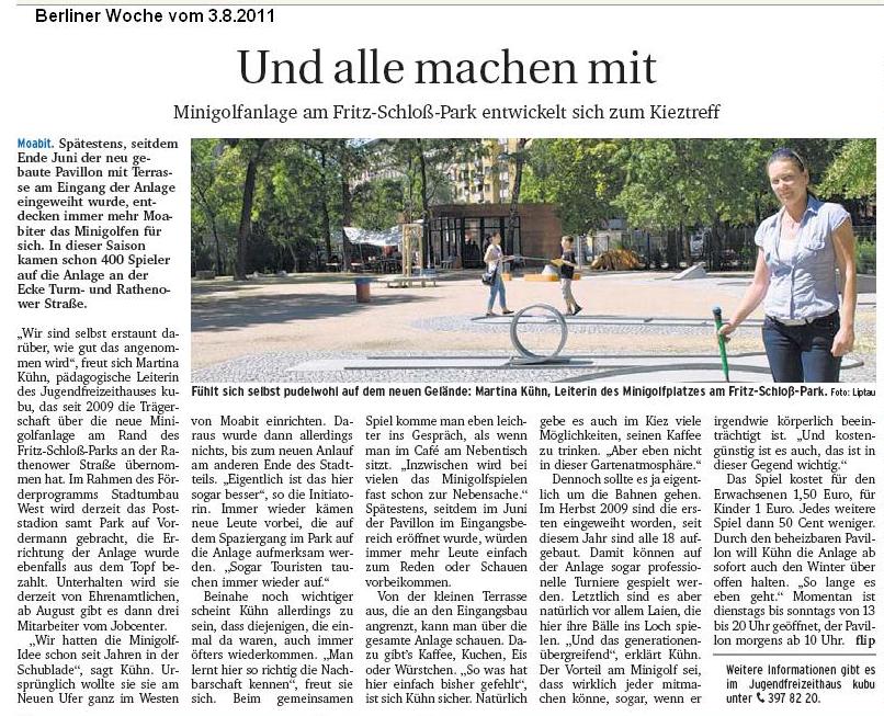 Wie die Berliner Woche am 3.8.2011 schreibt hat sich der Minigolfplatz zum Kieztreff entwickelt.