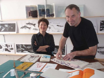 Ich lebe in Amsterdam und Moabit. Cornelius und ich haben uns vor Jahren ineinander verliebt, lieben uns immer noch, leben und arbeiten zusammen. Wir lieben beide auch die Galerie Nord und die Buchkunst. Der Direktor der Galerie fand unsere Idee einer Künstlerbuchmesse sehr interessant und unterstützte die Realisierung der ersten artbook.berlin 2012.