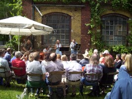 Wer Lust auf Kaffee und Kuchen in einem wunderschönen Garten mit niveauvollen Kulturdarbietungen hat, der kommt Samstag und/oder Sonntag ab 14 Uhr in die Kruppstraße 16. Anderl Kammermeier und Brigitte Stockman laden ein in den ehemaligen Geschützschuppen des 1. Garde-Feld-Artillerieregiments. Hier das ausführliche Programm von diesem Wochenende und weitere Veranstaltungen im August und September.