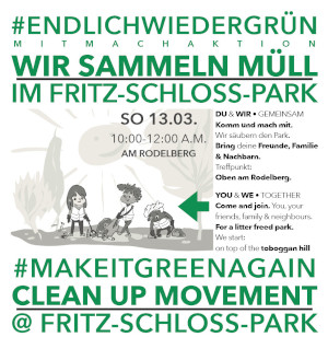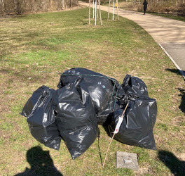 Am Ende waren es etwa 30 Erwachsene und 20 Kinder - querbeet durch alle Altersgruppen. Nachbarinnen und Nachbarn, viele Familien mit Kindern aus der Kurt-Tucholsky-Grundschule und verschiedenen Kitas, Freunde und Freundinnen, Hundebesitzer und Hundebesitzerinnen, Netzwerker und Netzwerkerinnen sammelten am Sonntag, den 13. März vormittags Berge von Müll im Fritz-Schloß-Park.