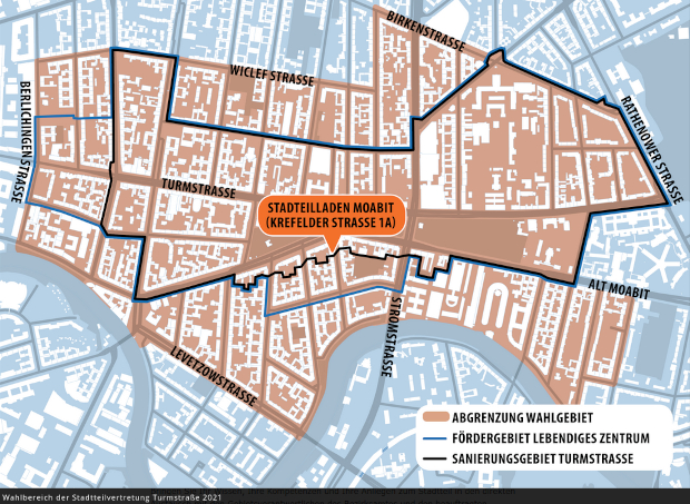Infos auf der Webseite des Lebendigen Zentrums und Sanierungsgebiet Turmstraße zur Wahl der Stadtteilvertretung.