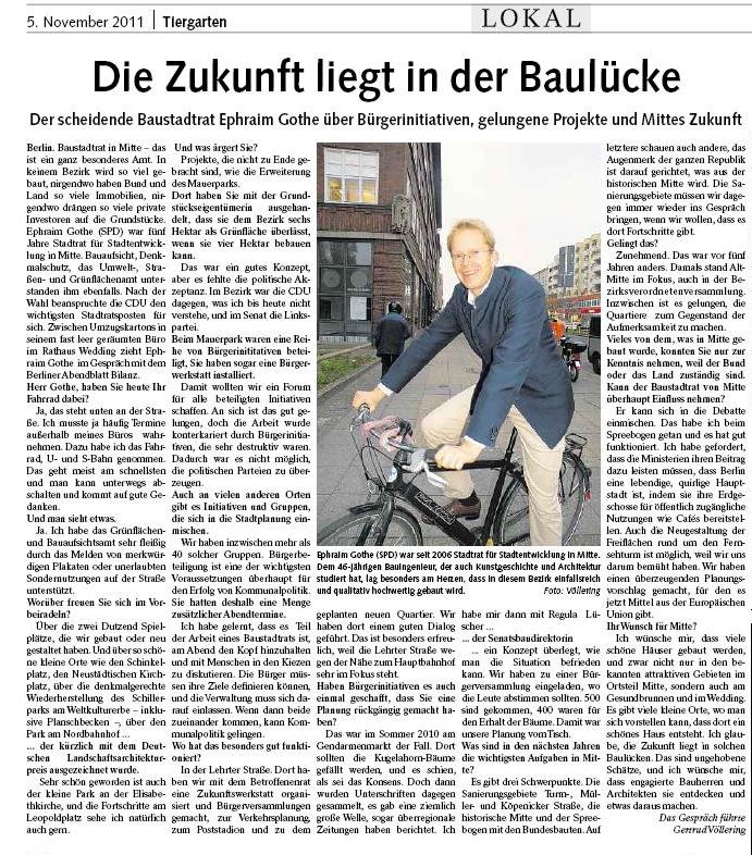 2016 ist Gothe der neue (alte) Baustadtrat im Bezirk Mitte, zu einigen seiner Vorschläge je ein Artikel im Tagesspiegel und in der Berliner Zeitung.