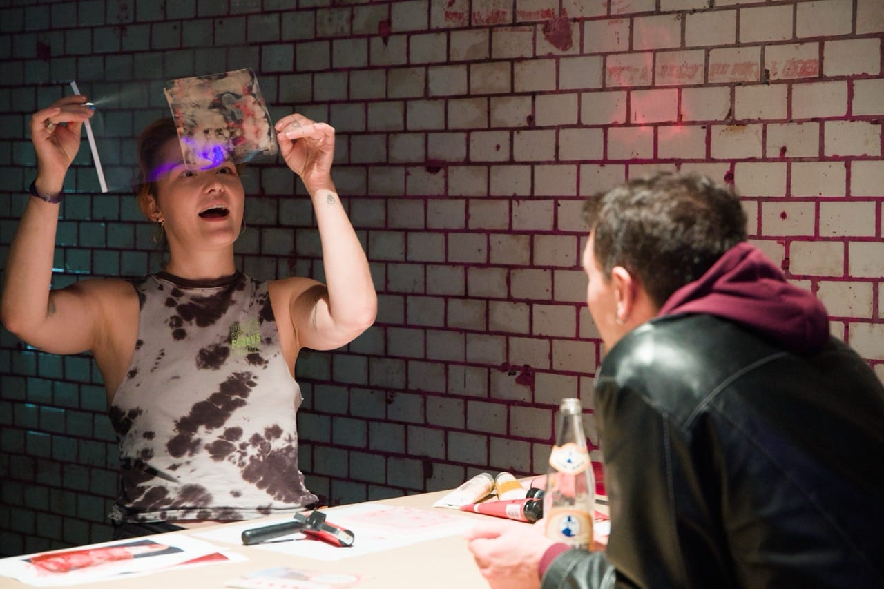 Ich fand am schönsten, Kunst in ungewohnten Räumen zu erleben und zu sehen, wie sie ganz spielerisch in den Alltag rutschte. 2023 etwa, unter dem Motto „GAST/SPIELE“, beschäftigte sich der Ortstermin mit dem Thema des Gastgebens und mit der Frage, wie nach Jahren der Corona-Isolation wieder Gemeinschaft stattfinden kann. Im Fokus standen dabei alteingesessene Kneipen im Kiez. Aber auch hippe Szenecafés oder Hotelzimmer wurden zu Kunst-Orten. In geführten Rundgängen lernten die Besucher*innen diese sozialen Treffpunkte und die darin ausgestellten Werke zwischen Tresen und Zapfhahn näher kennen.
