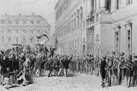 Hier möchte ich noch den Auszug aus einer Rede Mieroslawskis anfügen (dokumentiert in einer Flugschrift „ Die Öffnung des Polen-Kerkers in den blutigen Tagen in Berlin“ aus dem Stadtarchiv München): „Nicht du, edles deutsches Volk, hast meinem unglücklichen Vaterlande Fesseln geschmiedet; deine Fürsten haben es getan: sie haben mit der Teilung Polens ewige Schmach auf sich geladen. Und wie es jüngst noch für Euch und uns als Verbrechen galt, nach des Vaterlandes Freiheit zu ringen, und wie sie uns darob, draußen im Kerker in eiserne Bande schlugen, so warst du es, hochherziges Vok, dessen Blut in diesen Tagen der Befreiung auch für unsere Freiheit floss. Wir danken Euch! Eure Freiheit ist unsere Freiheit, und unsere Freiheit ist die Eure! Herr sein oder Sklave sein, eins wie das andere läuft gegen die heiligen Gesetze der Natur. Nur freie Menschen, nur freie Völker können sich achten...“. Daran sollten wir anknüpfen und uns von den Mächtigen, selbst wenn sie heute eher in der Wirtschaft sitzen, nicht gegeneinander ausspielen lassen.