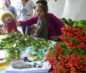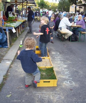 Den Auftakt machten Natascha Kiowsky und Ilonka Reile, die Ansprechpartnerinnen des Projekts, mit einem Stand auf dem PerlenKiezfest Anfang September. Die Flyer mit allen Veranstaltungterminen von September bis Dezember 2011 wurden verteilt (Link siehe ganz unten). Außerdem warben sie um die Teilnahme von kleinen und großen Anwohner/innen bei einen Fotowettbewerb "Natur - Natürlich" und einem Umweltmedienprojekt für 12 - 14jährige in den Herbstferien. Vor dem Stand konnten sich klein und groß auf einen Barfußpfad vergnügen und erfühlen, welechen Unterschied Erde, Rindenmulch, Sand und Gras unter den Fußsohlen machen.
