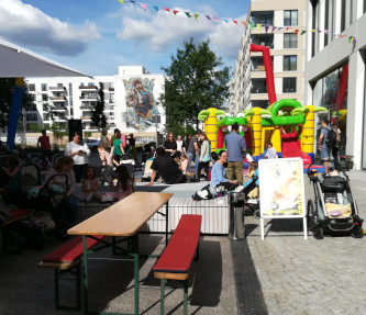 Das konnte beim sogenannten Nachbarschaftsfest am 31. Mai 2024 aufgeklärt werden - jedenfalls mündlich. Ausgerichtet hat das Fest auf einem kleinen Platz zwischen zwei Wohnblöcken die Montibus Asset Management GmbH. An einem Infostand für die Vermarktung der Wohnungen mit exorbitanten Mieten von ca. 28 Euro kalt (QH Mietwohnungen / allod) wurde erklärt, dass es keine Sozialwohnungen im QH Spring geben wird. Auf den Einwand, dass es schließlich doch den städtebaulichen Vertrag gäbe, hieß es: der Rechtsanwalt des Eigentümers - ob des alten oder des neuen blieb unklar - habe der Senatsverwaltung erklärt, dass der städtebauliche Vertrag sich auf die Errichtung von Sozialwohnungen beziehe und errichtet sind sie. Aber es wären von Anfang an keine Förderungen in Anspruch genommen worden, deshalb müsse auch nicht als Sozialwohnungen vermietet werden. Das ganze Gebäude sei an eine - leider ungenannte - Firma vermietet worden. Auch diejenigen Mietinteressierten, die sich in der letzten Zeit gemeldet hätten, seien darüber informiert worden, dass es keine Sozialwohnungen dort gäbe. Auf Nachfrage, ob den alle Menschen, die sich über die Online-Liste beworben hätten, informiert wurden, hieß es: Nein, nur, die die nachgefragt haben.