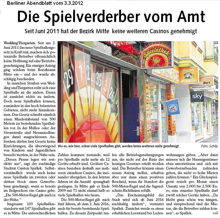 Artikel im Berliner Abendblatt zur Auswirkung des Spielhallengesetzes "Die Spielverderber vom Amt".