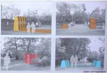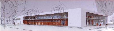 TOPOTEK hatte die Idee in einem "Walk of Fame" jeweils riesige Gesichter von bekannten Sportlern aus Beton an die Eingänge zu plazieren, Peter Hausdorf hat begeh- oder bespielbare farbige Platzflächen geschafften und glaßer und dagenbach haben eine Skulptur entworfen, die ganz unterschiedlich gestellt werden kann, und mit rund geschwungener Form und Farbe die Eingänge markiert. Ein Auswahlgremium hat sich für den letzten Entwurf entschieden. Wann das gebaut wird, habe ich nicht mitbekommen oder es wurde nicht gesagt.